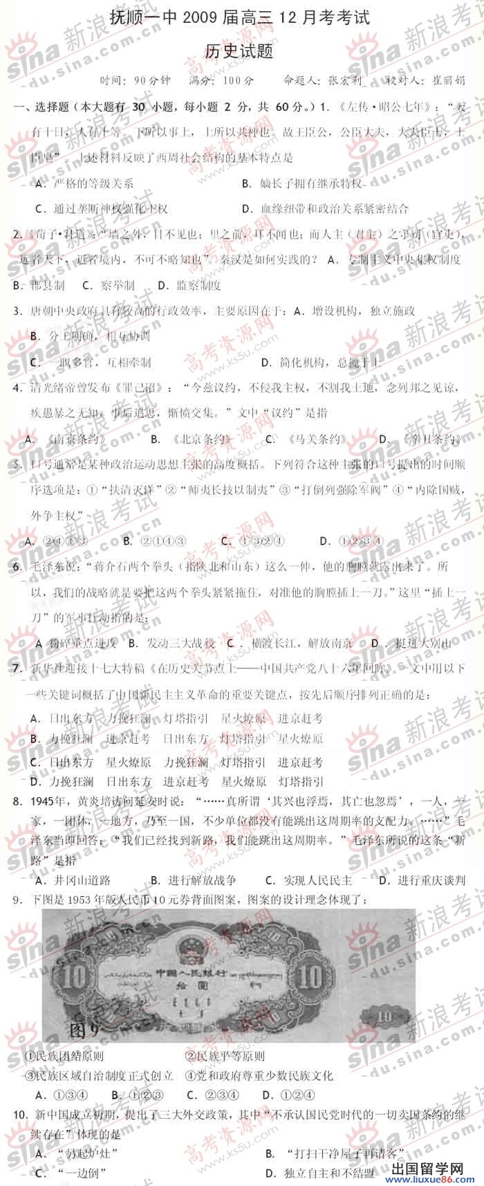 本文来源:https://www.liuxue86.com/a/484884.html看过《辽宁省抚顺一中2009届高三12月月考历史试题》的人还看了以下文章