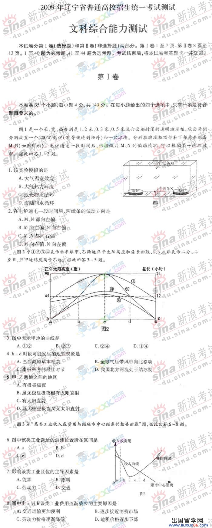 09辽宁省普通高校招生统一考试测试题五模拟题文科综合试卷