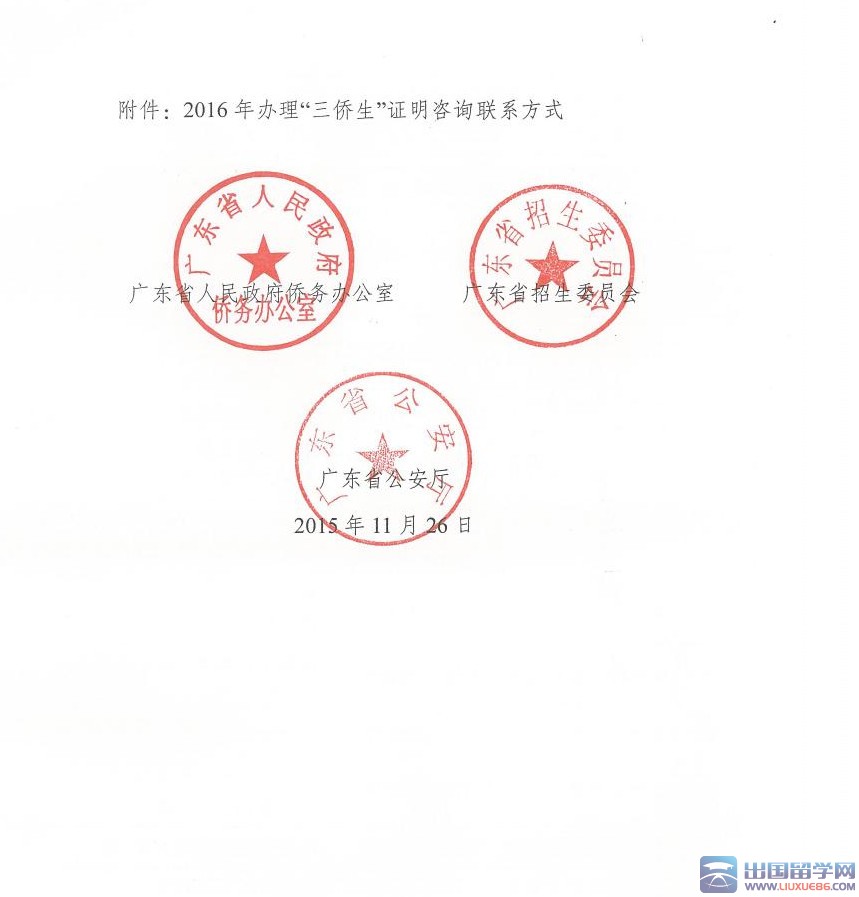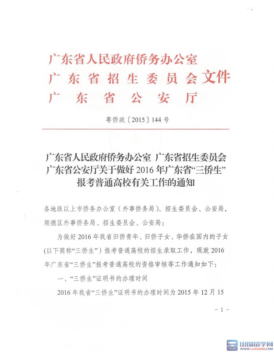 二、2015年“三侨生”证明依据《广东省人民政府侨务办公室、广东省招生委员会、广东省公安厅关于参加高等院校招生考试的“三侨生”证明办理的程序规定》(粤侨办〔2014〕4号)办理。