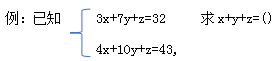 仅运用在不定方程组中,且让我们求所有未知数之和。不定方程组有无穷组解。而我们只需求未知数之和。也就意味着未知数之和是确定的。所以此时我们只需求出中的某一组求和就能得到答案。