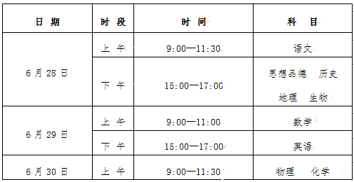 4月9日从宁夏教育厅获悉,2018年全区初中毕业暨高中阶段招生考试将于6月28日—30日举行,由自治区教育厅统一命题。考试安排如下: