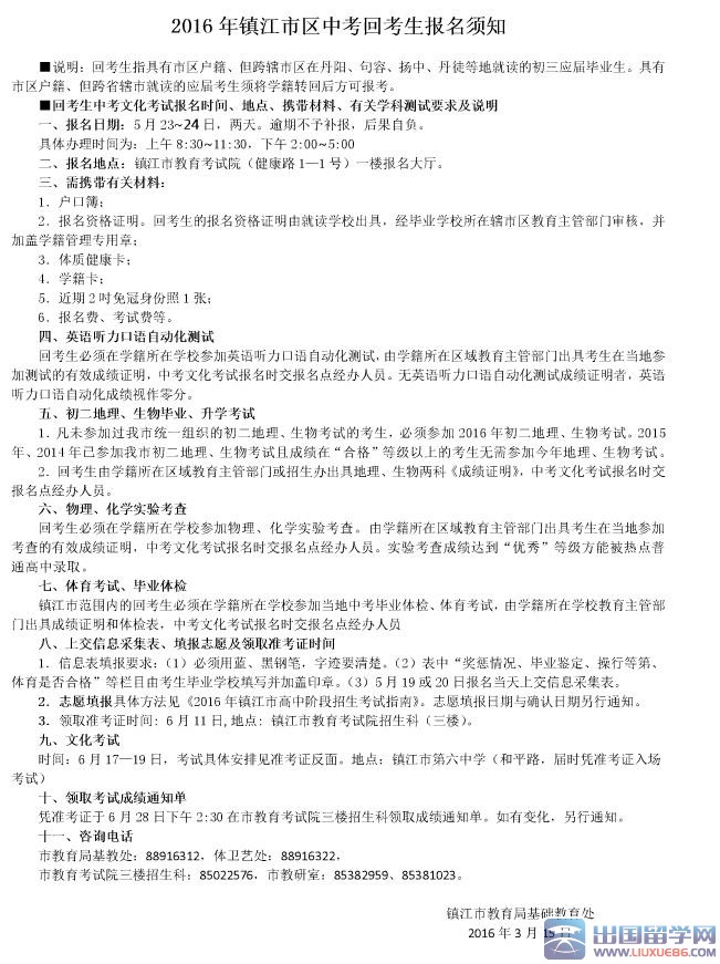 中考报名须知推荐访问
