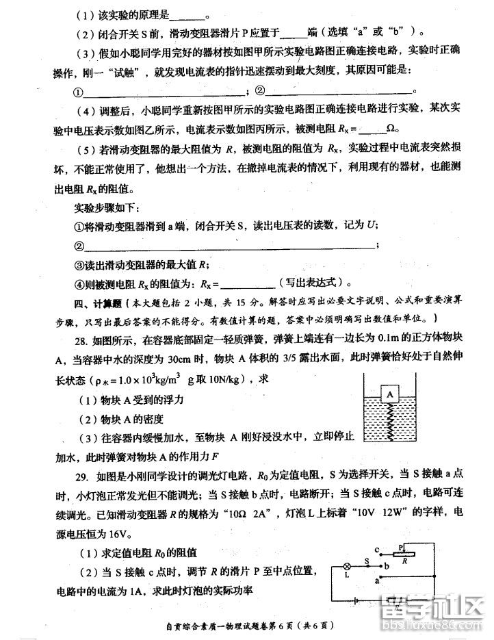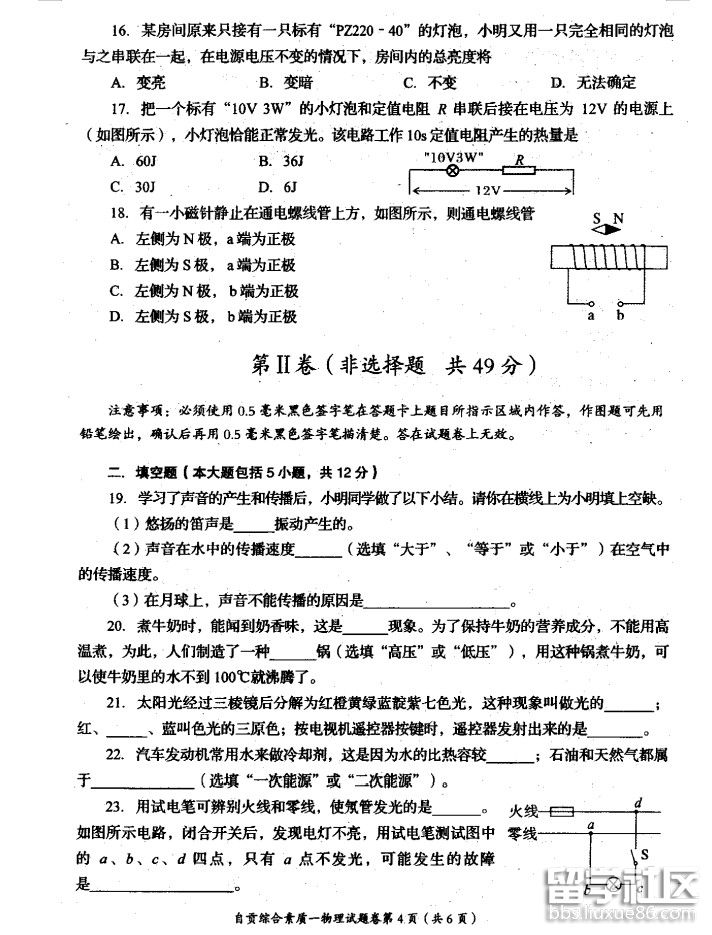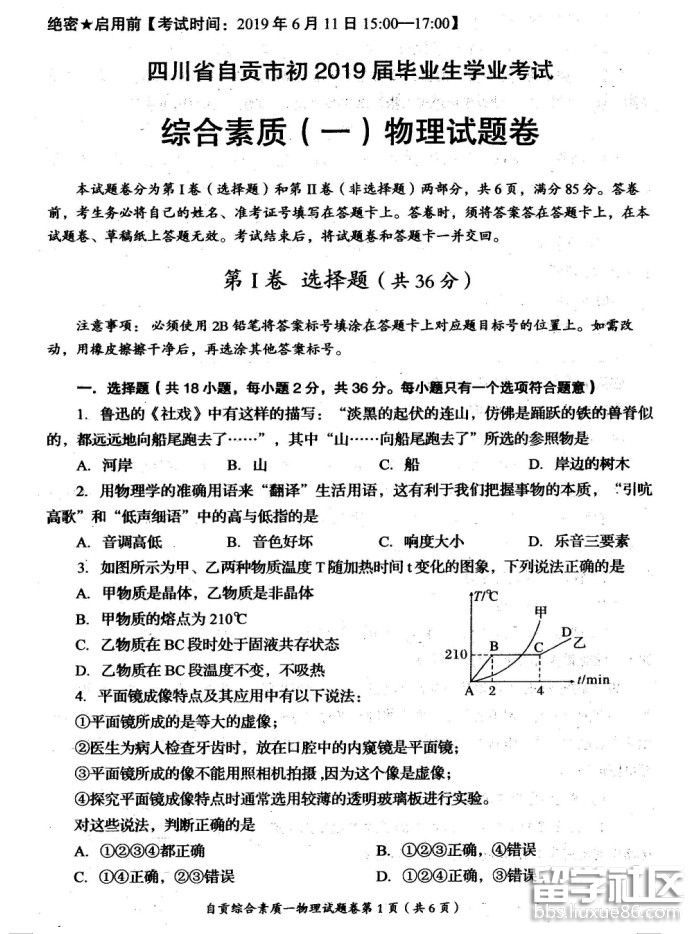 2019年四川自贡中考物理试题已公布