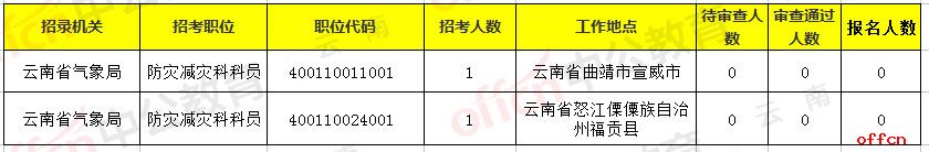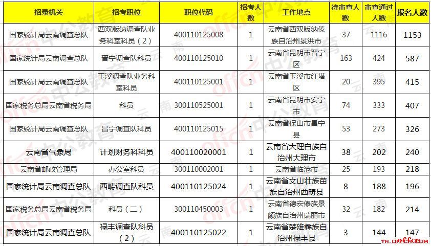 职位分析:职位分析:截至2018年10月25日9时国家公务员考试云南考区无人报名的岗位仅剩2个,在这里提醒各位考生,需要抓紧报名时间,以免错过2019国家公务员考试;