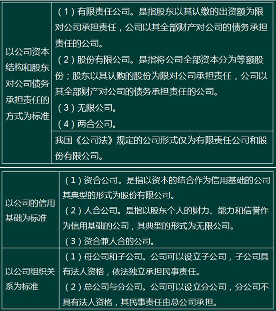 考点1:公司的概念和公司具体种类 ★★