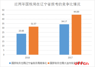 2018年和2017年辽宁省税务局的报名人数趋于稳定,保持在19000人左右,而大连市税务局由于2018年招录人数较2017年有所下降,报名人数也相应地有所减少;另外,辽宁省税务局和大连市税务局的报考竞争比都有所下降,专家预计今年报考的竞争比还会持续下降: