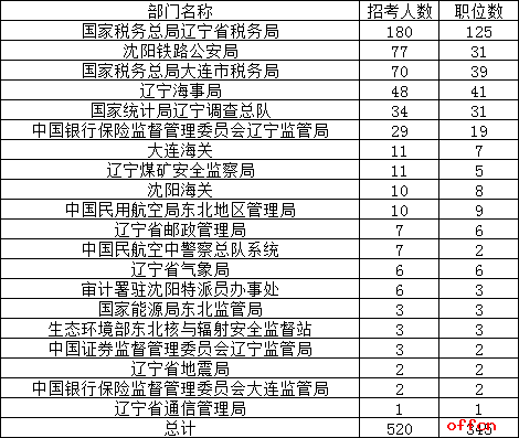 2019年国考辽宁地区部门招录情况