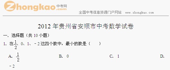 2012安顺数学中考题下载