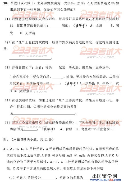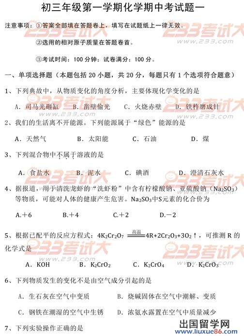 出国留学网专题频道化学中考栏目,提供与化学中考相关的所有资讯,希望我们所做的能让您感到满意!