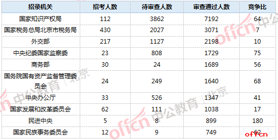 2019北京国考报名人数统计:招录机关审核通过人数排行