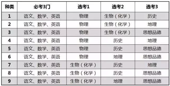 学生可以根据自己的强项来进行三门选考科目的排序,因为涉及到了选修分数排序不同,折算比例也就不同。总共有9种选课组合,能排出54种分数折算方式。