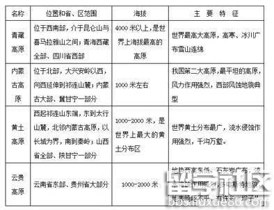 四大高原: