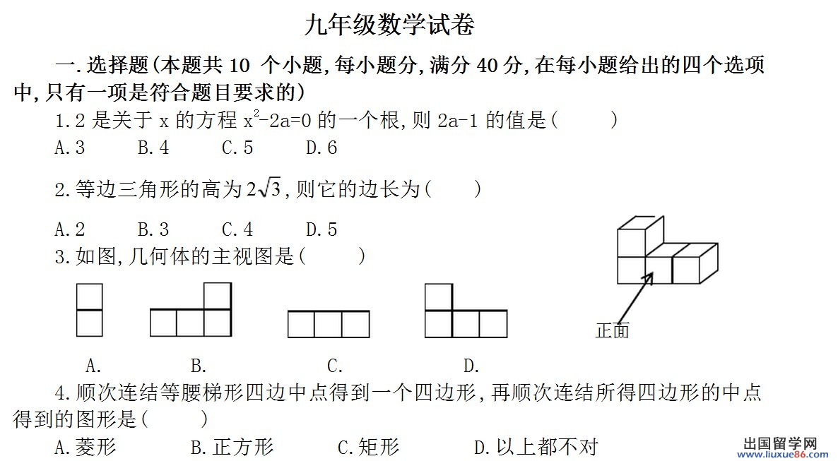 出国留学网中考频道在考试后及时公布各科中考试题答案和中考作文及试卷专家点评,请广大考生家长关注。时光飞逝,暑假过去了,新学期开始了,不管情愿与否,无论准备与否,我们已走进初三,走近我们的梦!祝愿决战2014中考的新初三学员能加倍努力,在2014年中考中也能取得优异的成绩。