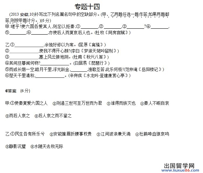 出国留学高考网为大家提供2016广东高考语文考点变化:名句名篇考64篇古诗文,更多高考资讯请关注我们网站的更新!