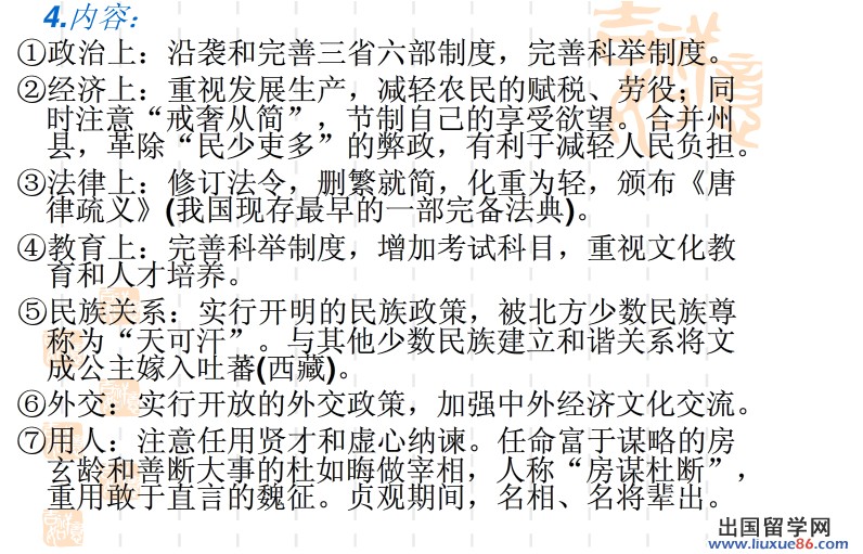 ②使用人才:知人善任,各取所长(房玄龄,杜如晦);一视同仁,民族平等;