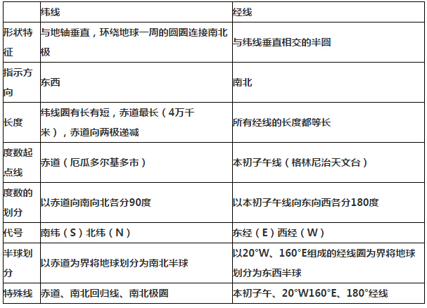 中考地理《地球与地图》知识点:经纬线基本知识总结