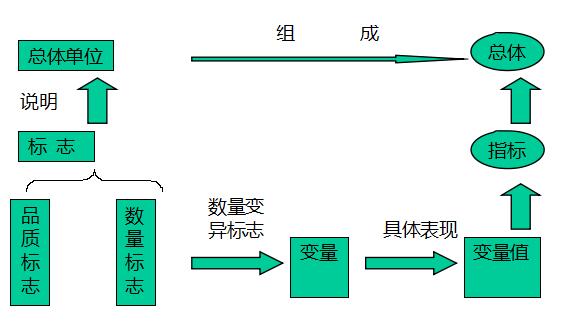 · 指标:反映总体现象数量特征的概念。