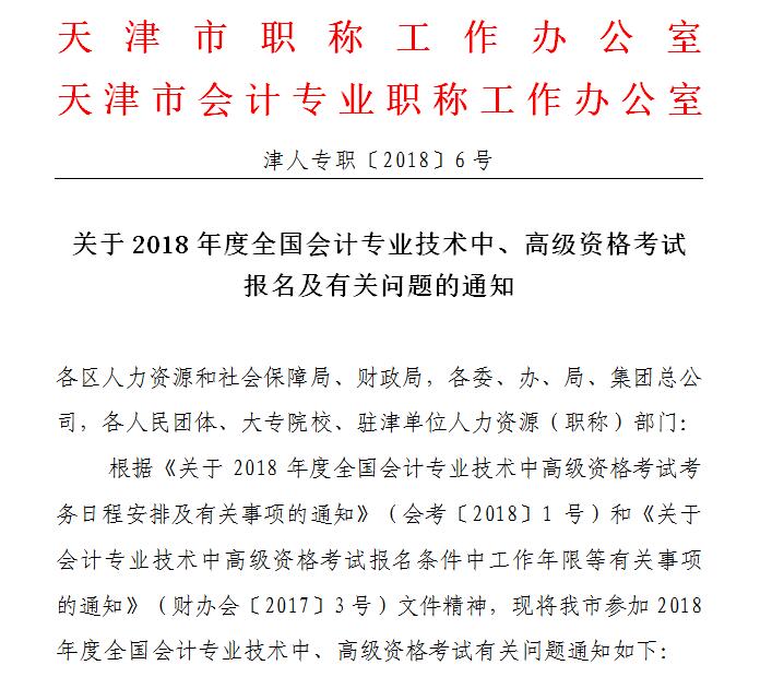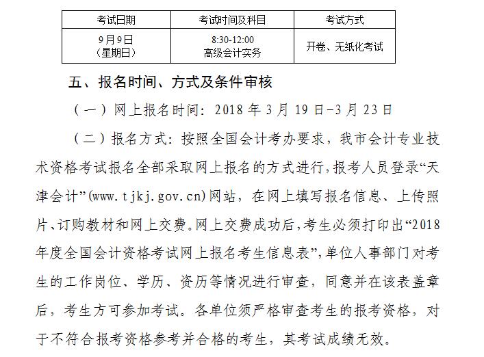 2018年天津高级会计师考试报名及有关事项通知