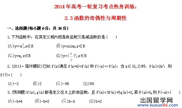 高考数学第一轮复习时大家一定要掌握好每个知识点,多做练习题!出国留学网高考网为大家提供2016年高考数学第一轮复习要点:指数函数、函数奇偶性,更多高考数学复习资料 请关注我们网站的更新!
