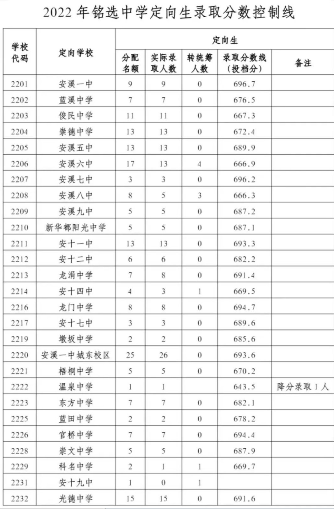 2、2022年安溪一中定向生录取分数控制线