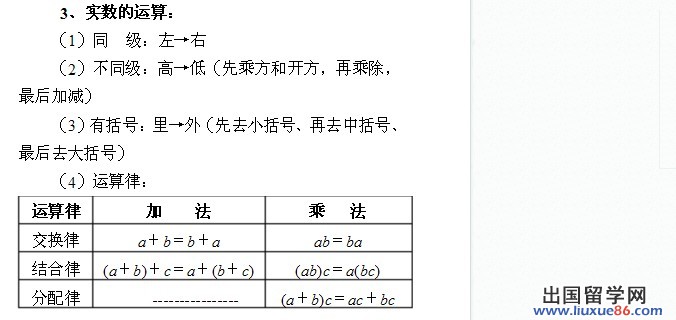出国留学网中考网为大家提供2017中考数学知识点:实数的运算,更多中考数学复习资料请关注我们网站的更新!