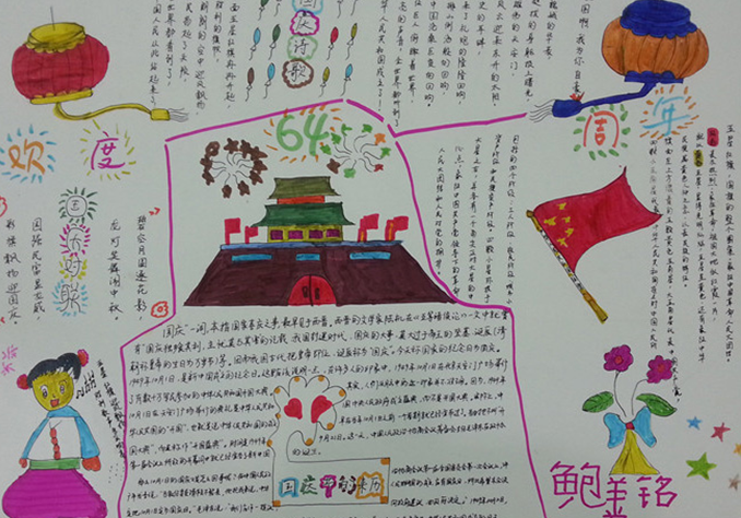 2、举行了主题为“祖国,我爱你”学生手抄报活动,让学生在自己制作过程中感受祖国的温暖。