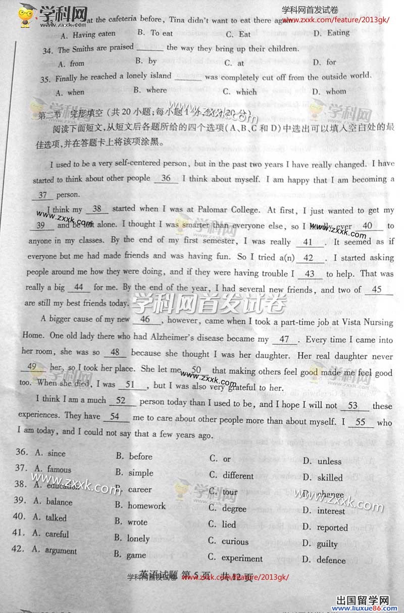 高考结束了,孩子们更多的是想知道结果,下面是出国留学网给大家整理的2013山东高考真题,欢迎您收藏本网站。我们会第一时间为您公布2013山东高考英语真题答案的查询.一旦高考真题及答案发布,将在此表页的头条显示,如果您需要查找的真题及答案没有显示,请按crtl+F5进行刷新。