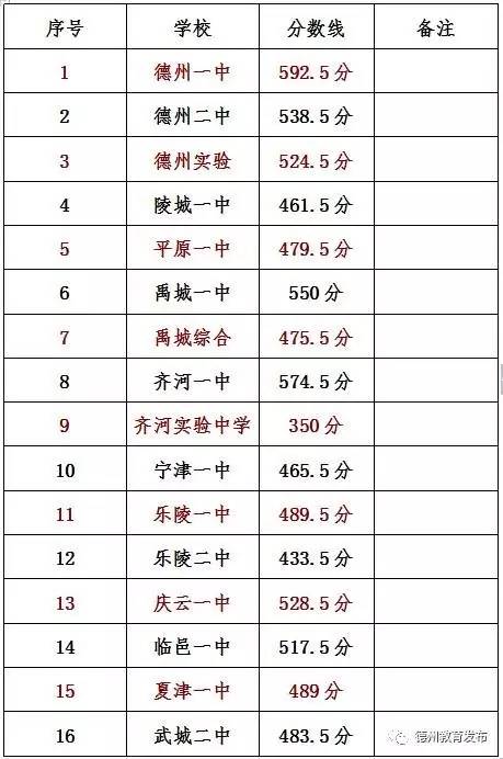 2018德州中心城区三所高中录取线