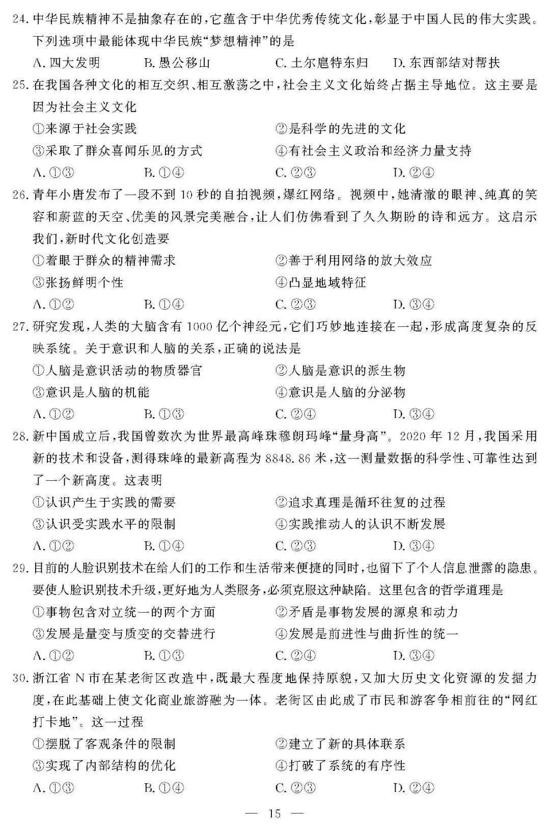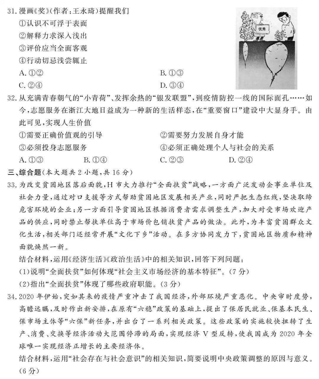 2021年1月浙江普通高中学考试题和参考答案(思想政治)