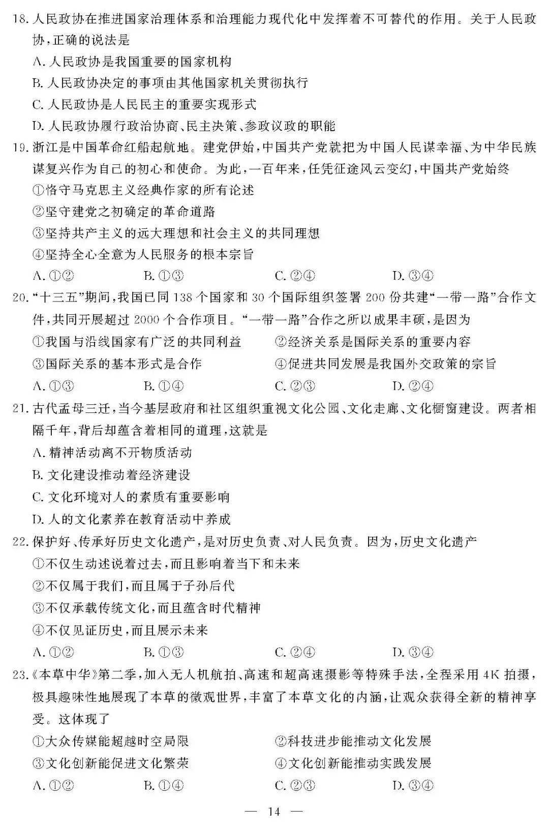 高考频道为大家提供浙江新高考2018年11月选考科目思想政治答案,赶紧对一下答案看看考得怎么样吧!更多高考资讯请关注我们网站的更新!