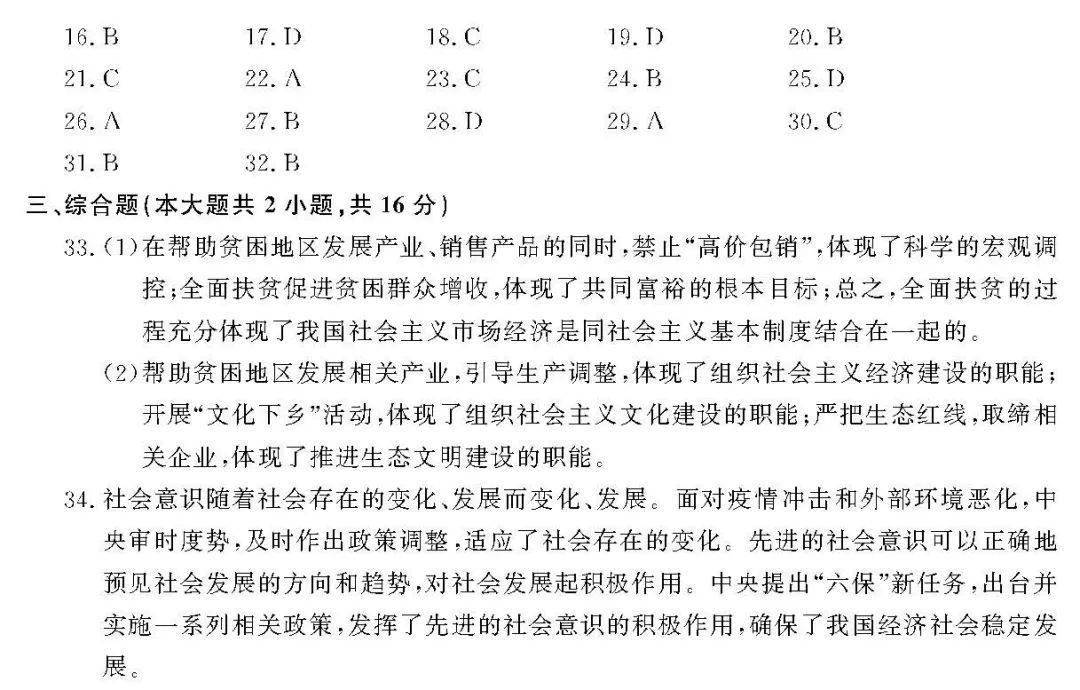 浙江新高考2018年11月选考科目思想政治答案