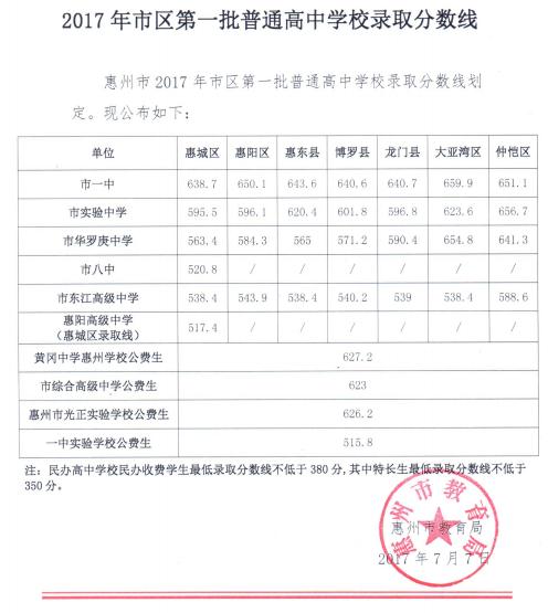 以下内容是由出国留学网编辑整理的2017广东惠州中考分数线已公布,希望对您有用。更多相关资讯请关注本站。