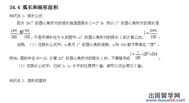 在半径是R的圆中,因为360°的圆心角所对的弧长就等于圆周长C=2πr,所以n°圆心角所对的弧长为l=n°πr÷180°(l=n°x2πr/360°)。