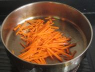 7.锅里油热,放下胡萝卜丝煸熟盛出,