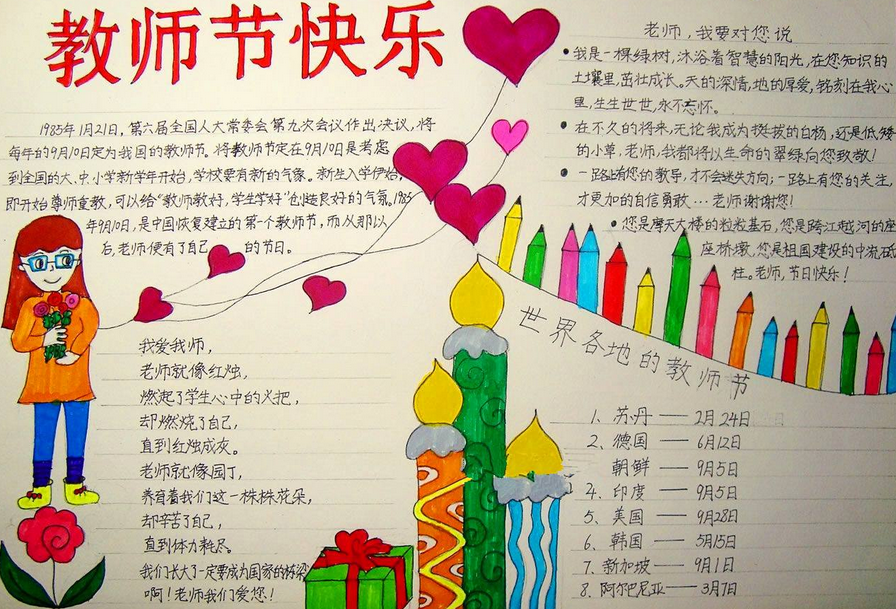 一壶清茶,饮尽半生沧桑风雨;几摞书卷,浓缩岁月多少眷恋。下面是由出国留学网手抄报栏目小编整理的关于教师节的小报,欢迎查看。