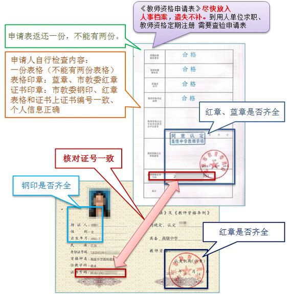 申请人或相关学校应在规定的时间内携带申请材料到教师资格认定机构指定的地点进行现场确认。各教师资格认定机构应认真核实申请人或相关学校提供的申请材料,当场出具受理或不受理的书面通知书。不予受理的应详细注明原因,申请材料不全、不规范的应当场告知其补充或完善。