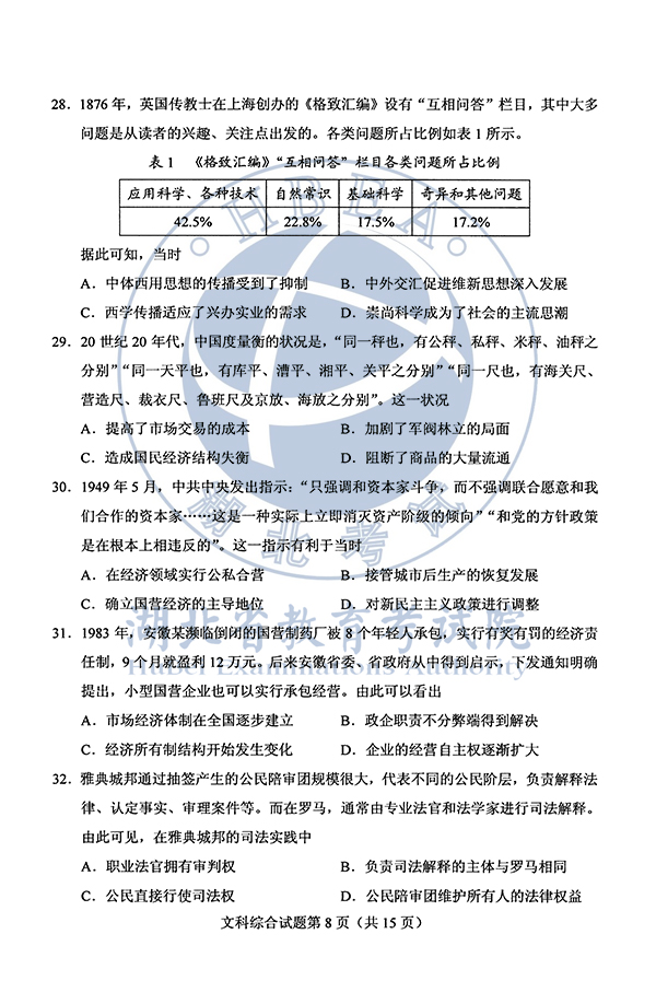 2020安徽高考文科综合试卷及参考答案(图文版)