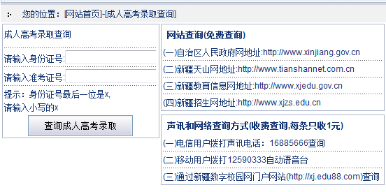 2017年新疆成人高考录取查询方式一:网站查询(免费查询)