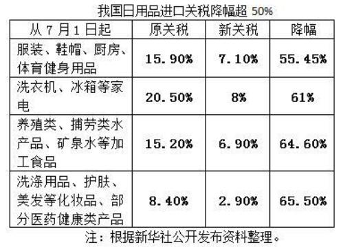 从今年7月1日起,较大范围下调日用消费品进口关税,更好满足国内居民多样化消费需求。这是中国继宣布7月1日起下调进口汽车关税后,又一个通过扩大开放惠及民众生活的重大举措。