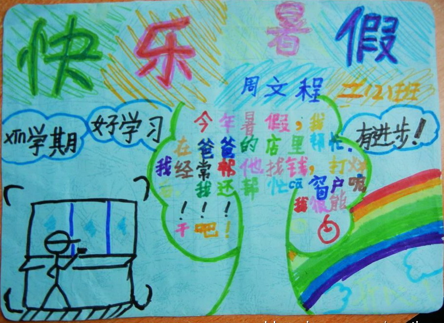 快乐暑假手抄报内容:多姿多彩的趣味暑假-周记500字