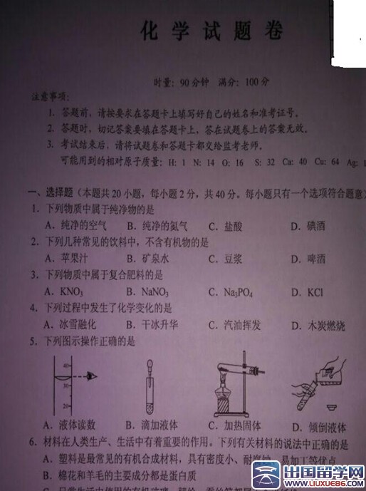 山路不象坦途那样匍匐在人们足下。出国留学网中考频道的小编会及时为广大考生提供:2015年湖南株洲市中考化学试题及答案,有需要的考生可以在考题公布后刷新本页面(按ctrl+F5),希望对大家有所帮助。