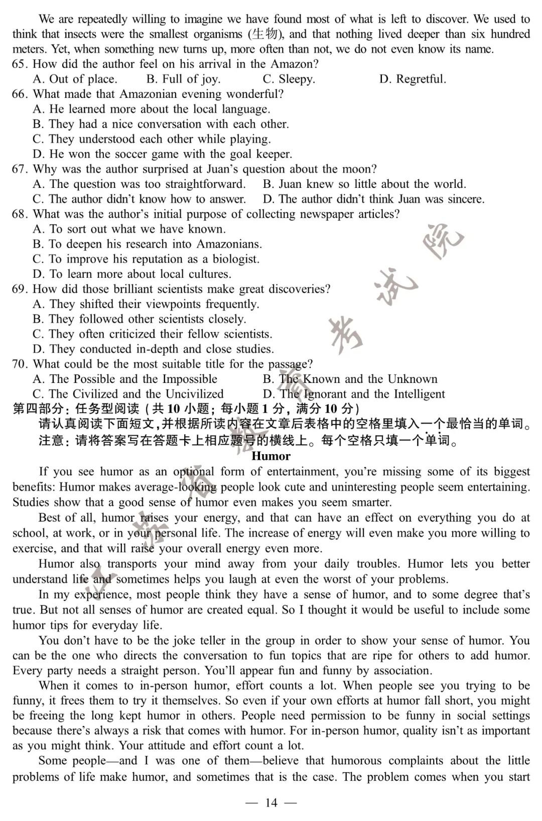 阅读下列短文,从每题所给的A、B、C、D四个选项中选出最佳选项。
