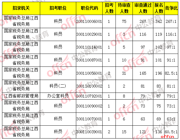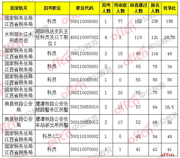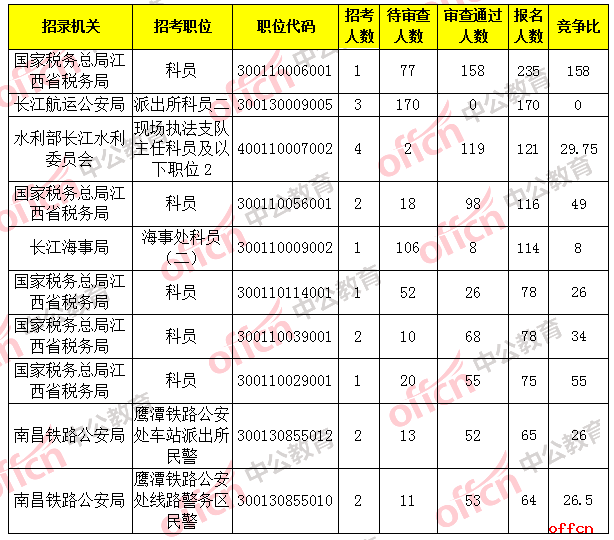 国考江西报名通过审核人数前十职位