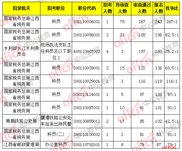 国考江西竞争最激烈的十大职位