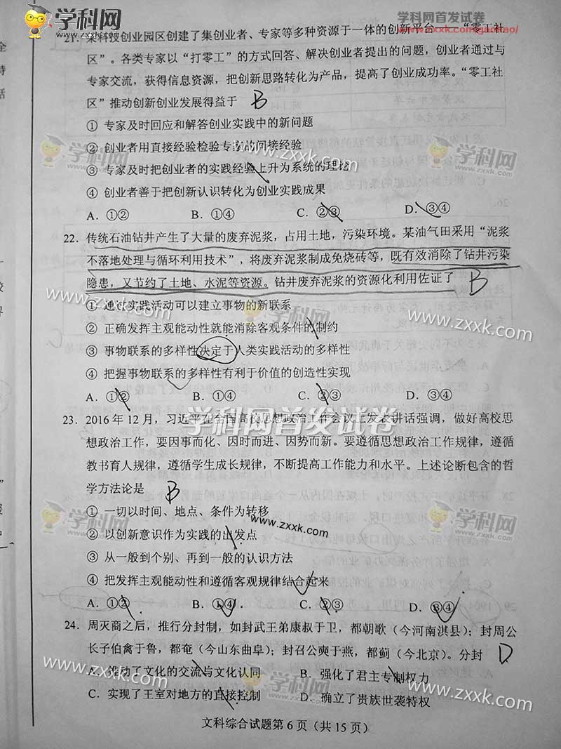 高考在即,出国留学网高考网为大家提供了[2017河北省高考文综真题及答案(图片版)],更多高考志愿填报指南,如院校精选、专业就业前景解析等优质内容,请关注高考栏目!