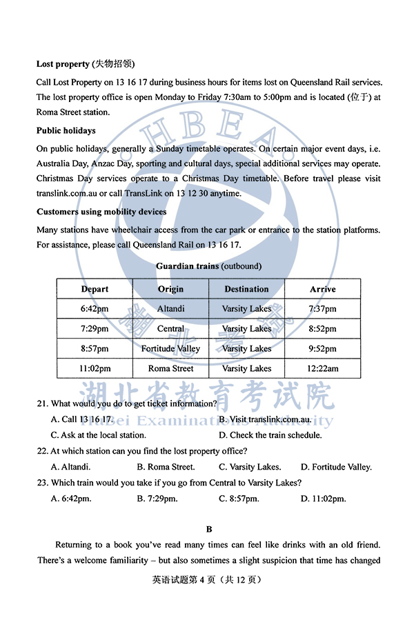 2020河南高考英语试卷及答案