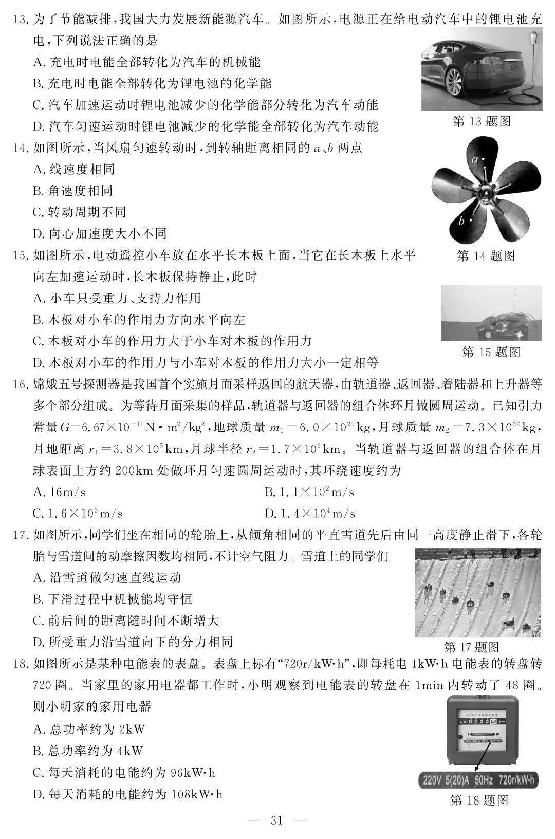 2021年1月浙江普通高中学考试题和参考答案(物理)