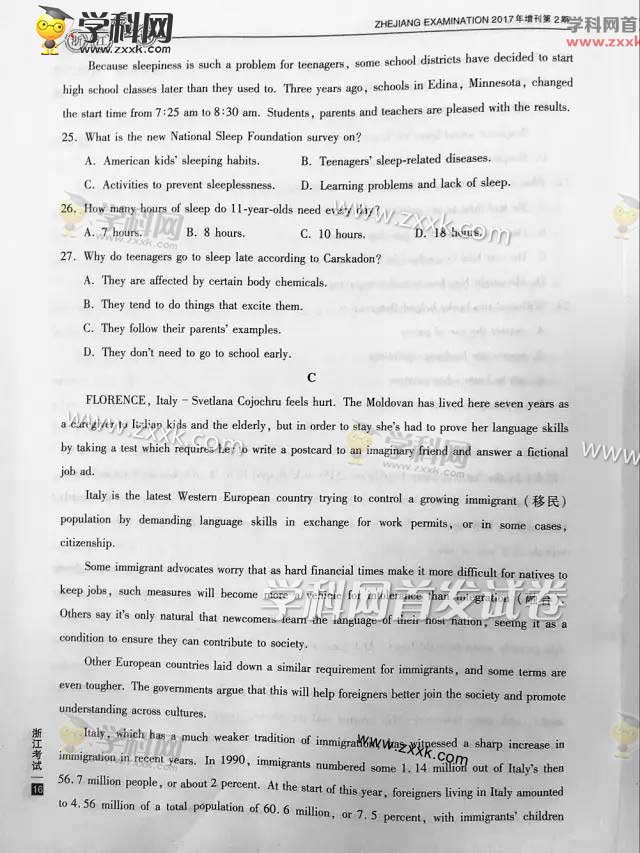 2017浙江高考英语真题及答案已出炉