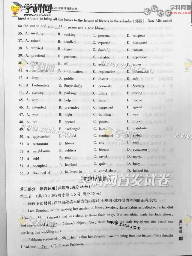 长风破浪会有时,直挂云帆济沧海。为这一天,我们准备了太多年。无论结果如何,过程中的成长收获都值得你我珍藏。下面是出国留学网高考栏目为你整理的“2017年浙江省高考英语试题及答案”,希望对你有帮助!