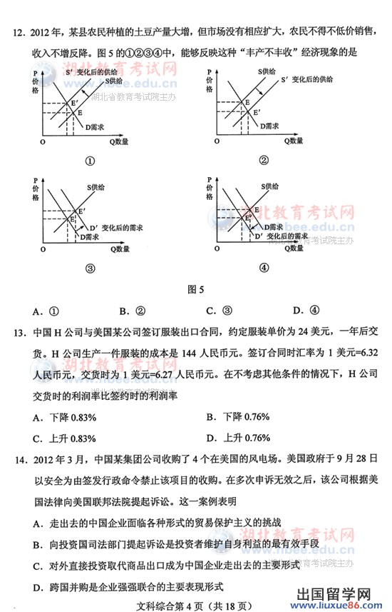 奋笔疾书如有神,胸有成竹定乾坤。2013年高考已然开始,不仅牵动着考场外广大家长的心,出国留学网高考频道小编心情和考生们一样,时时刻刻都关注着2013年湖北高考信息详情,故精心为广大考生提供2013年湖北高考文综真题及答案,一旦高考真题及答案发布,将在此表页的头条显示,如果您需要查找的真题及答案没有显示,请按crtl+F5进行刷新。希望考生们考后对估分有所帮助,从而安心去迎接接下来的考试和志愿填报等一系列高考后续工作。关注本网站更新(ctrl+D收藏即可)。